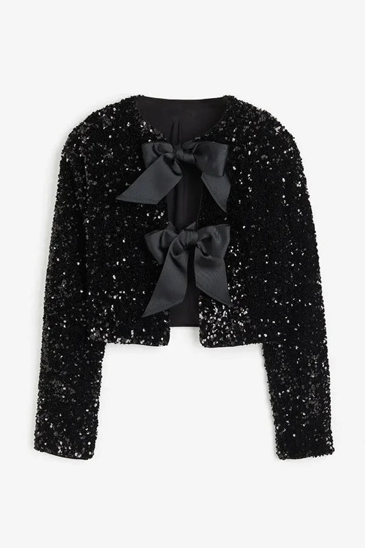 Leslie® | Two ways to celebrate a jacket with a bow and sequins at the front