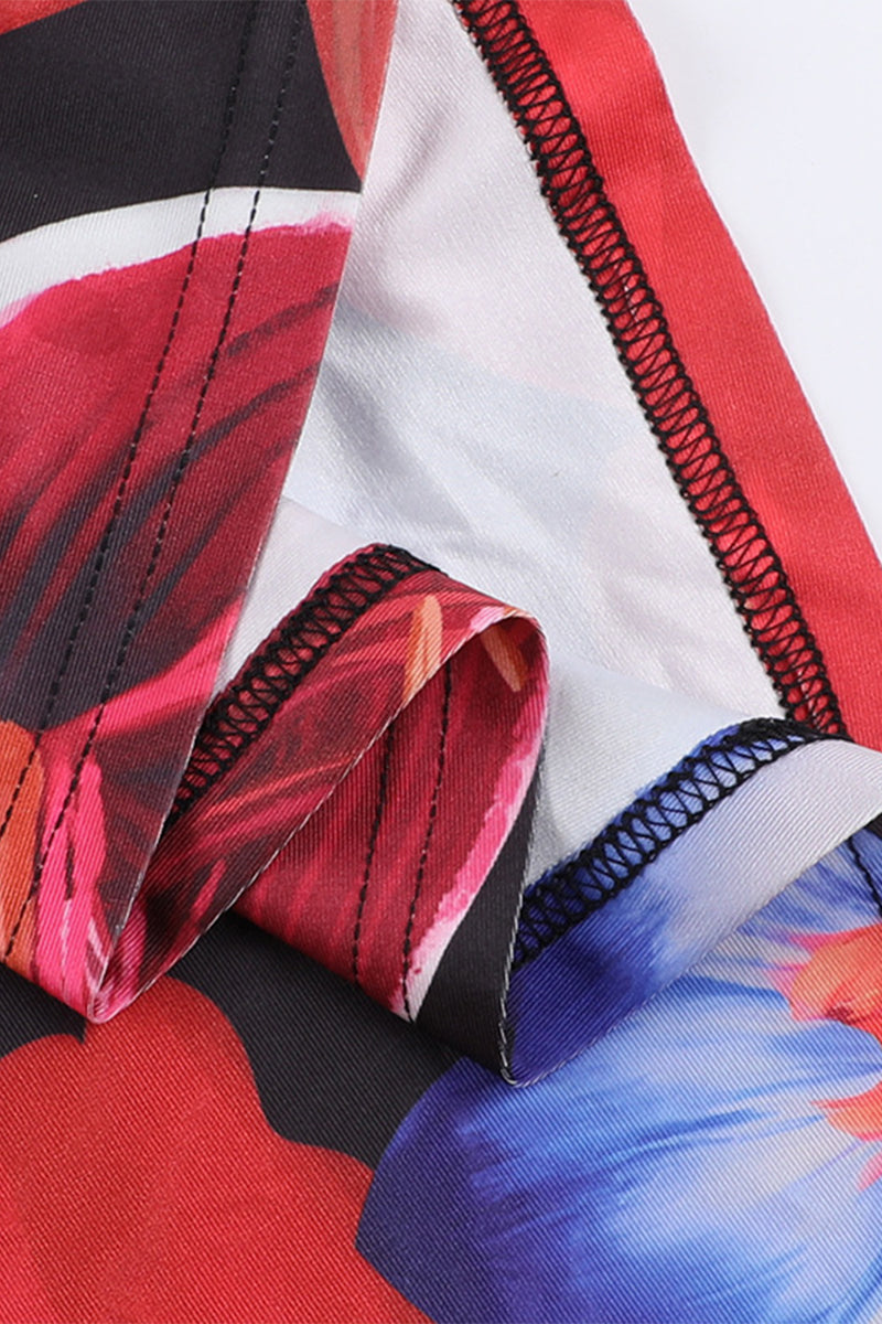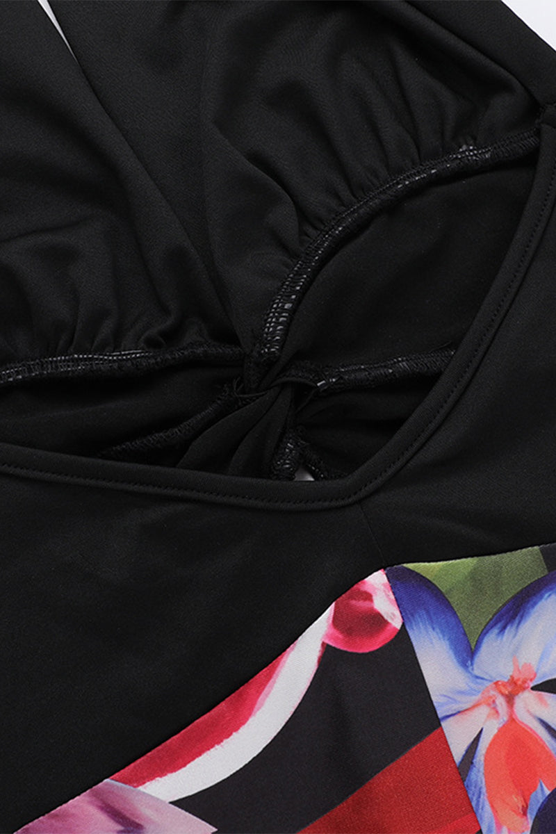Trinidad® | Sexy floral non-positioning printed backless halter dress with one tier skirt